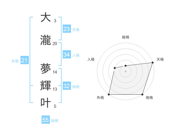 大瀧 夢輝叶さんを姓名の画数から五運を鑑定