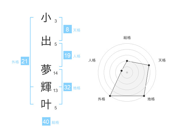 小出 夢輝叶さんの外格は21画の5点!