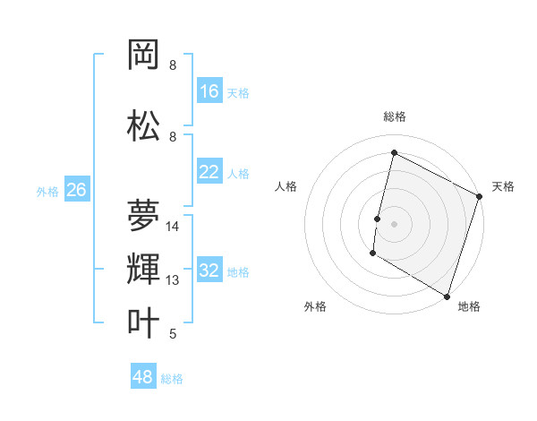岡松 夢輝叶さんを姓名の画数から五運を鑑定