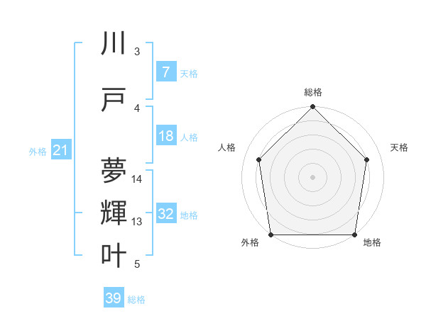 川戸 夢輝叶さんの総格は39画の5点!