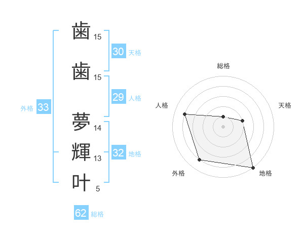 歯歯 夢輝叶さんの外格は33画の4点!