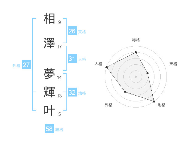 相澤 夢輝叶さんの総格は58画の4点!
