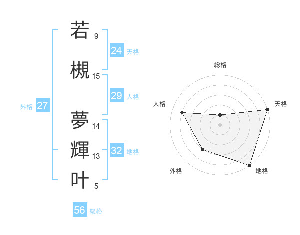 若槻 夢輝叶さんの天格は24画の5点!