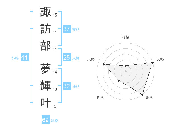 諏訪部 夢輝叶さんの地格は32画の5点!