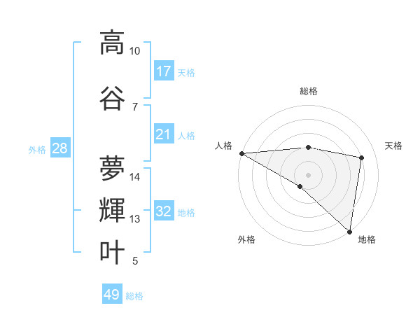 高谷 夢輝叶さんを姓名の画数から五運を鑑定