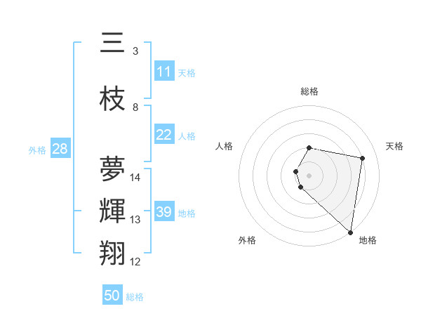 三枝 夢輝翔さんを姓名の画数から五運を鑑定