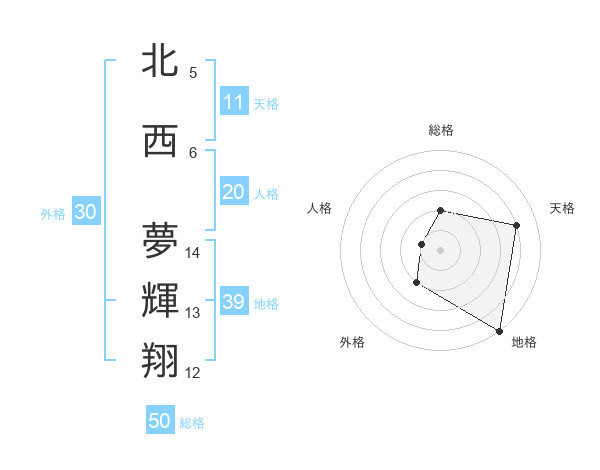 北西 夢輝翔さんの総格は50画の2点!