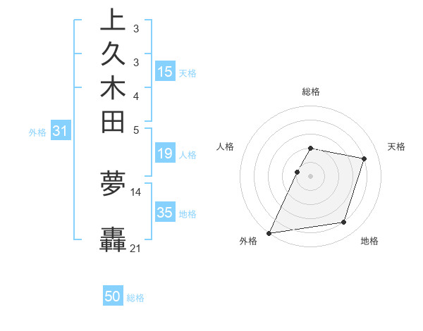 上久木田 夢轟さんの総格は50画の2点!