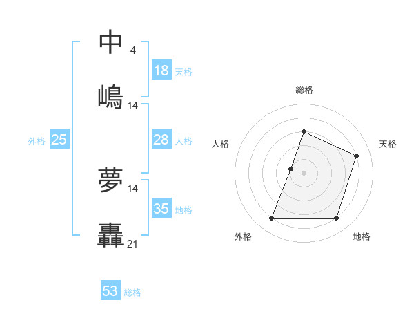 中嶋 夢轟さんの総格は53画の3点!