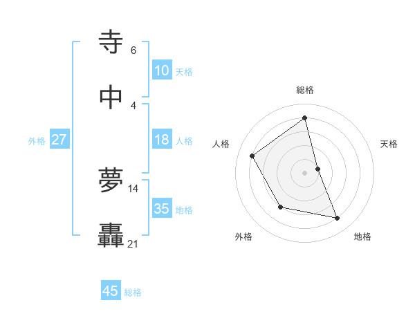 寺中 夢轟さんの総格は45画の4点!