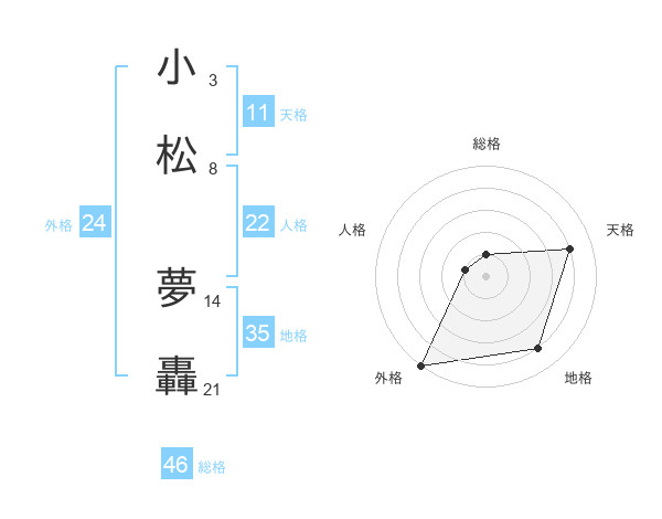 小松 夢轟さんを姓名の画数から五運を鑑定