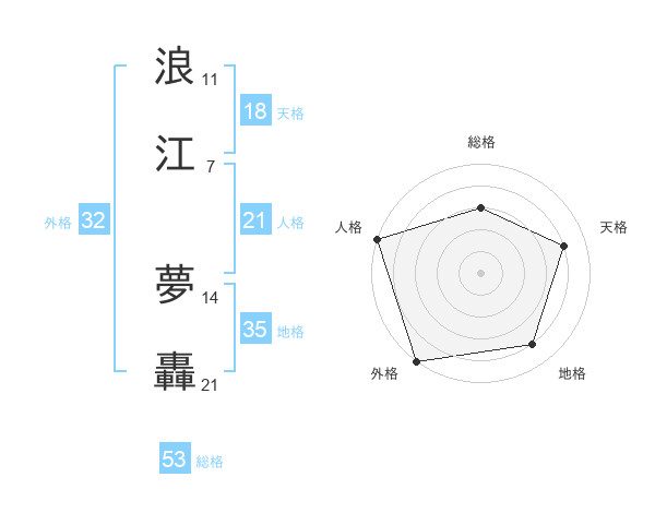 浪江 夢轟さんを姓名の画数から五運を鑑定