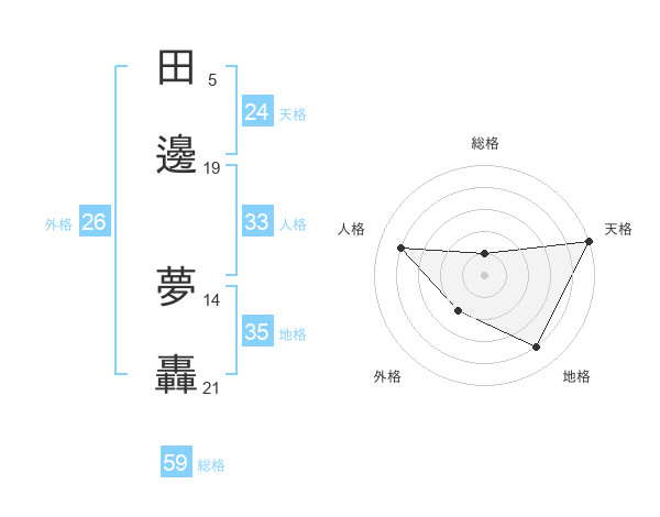 田邊 夢轟さんを姓名の画数から五運を鑑定