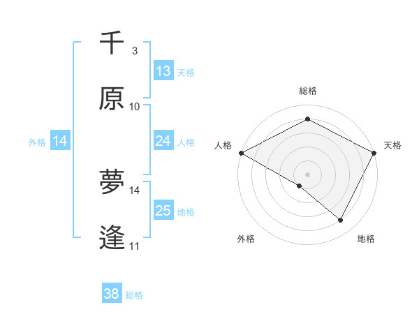 千原 夢逢さんの総格は38画の4点