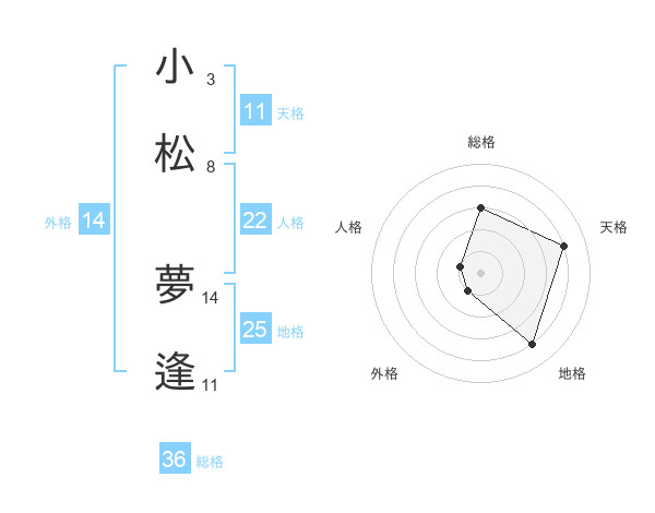 小松 夢逢さんの地格は25画の4点!