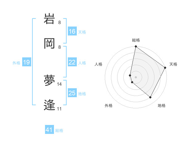 岩岡 夢逢さんを姓名の画数から五運を鑑定