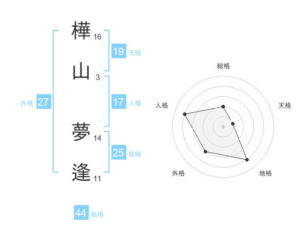 樺山 夢逢さんを姓名の画数から五運を鑑定