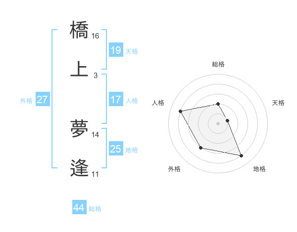 橋上 夢逢さんを姓名の画数から五運を鑑定