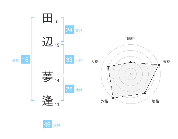 田辺 夢逢さんの天格は24画の5点!