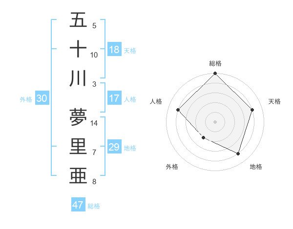 五十川 夢里亜さんの総格は47画の5点!