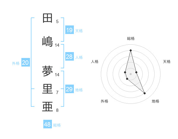 田嶋 夢里亜さんの総格は48画の4点