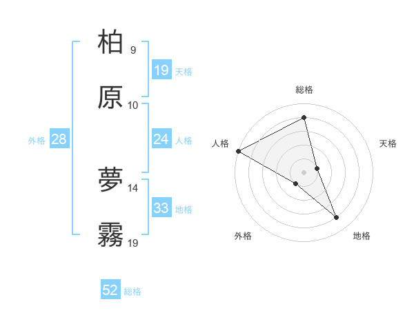 柏原 夢霧さんの天格は19画の1点!