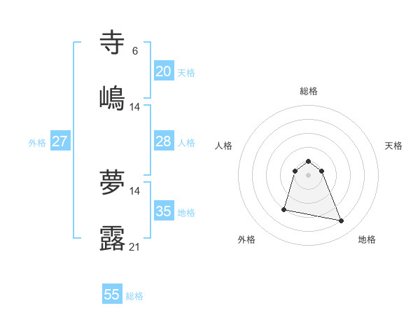 寺嶋 夢露さんの天格は20画の1点!