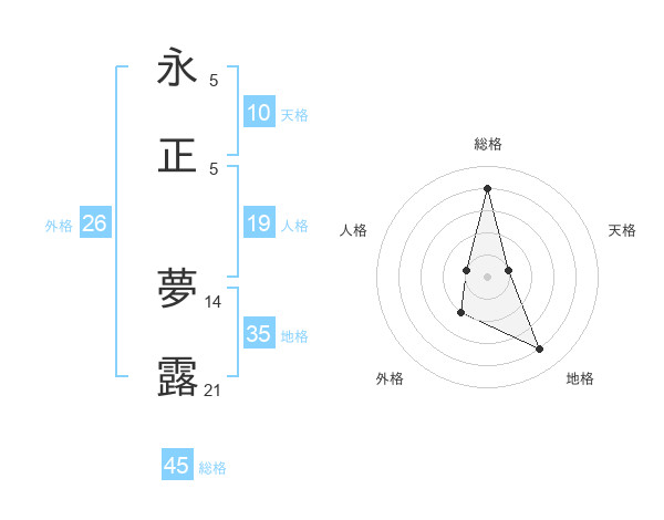 永正 夢露さんの総格は45画の4点!