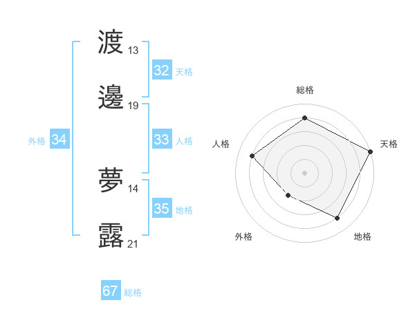 渡邊 夢露さんの天格は32画の5点!