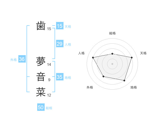 歯 夢音菜さんの総格は50画の2点!