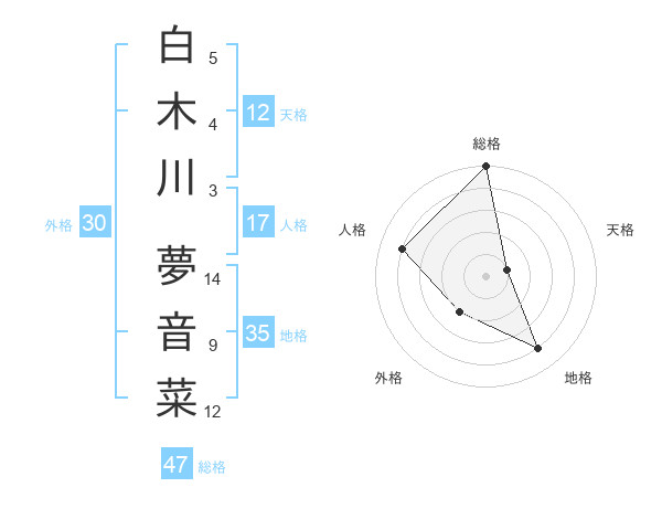 白木川 夢音菜さんの総格は47画の5点!