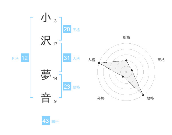 小沢 夢音さんの人格は31画の5点!