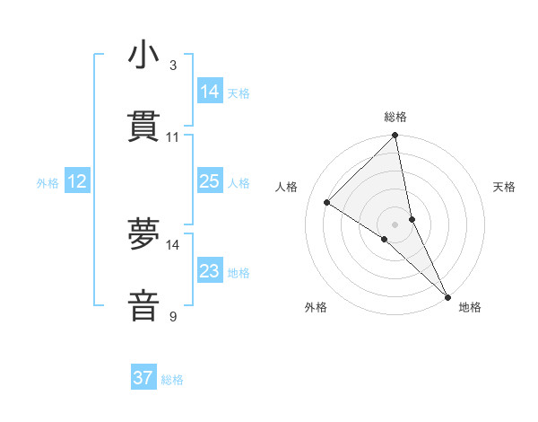 小貫 夢音さんを姓名の画数から五運を鑑定