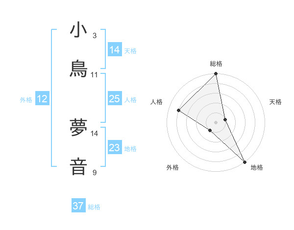 小鳥 夢音さんの総格は37画の5点!
