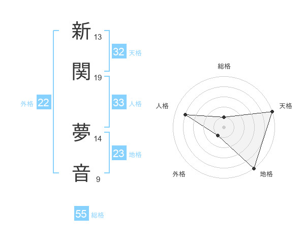 新関 夢音さんの外格は22画の1点!