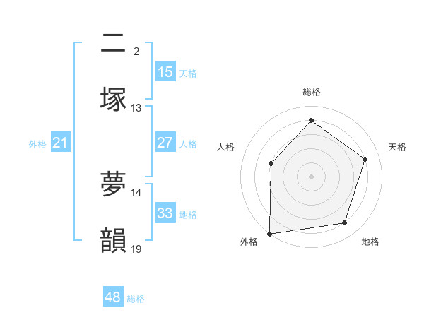 二塚 夢韻さんを姓名の画数から五運を鑑定