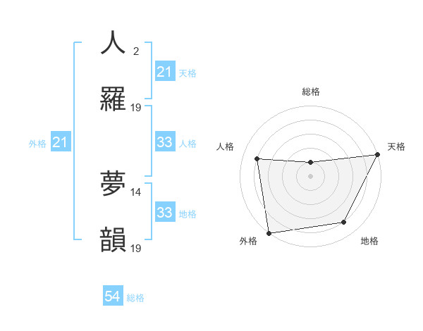 人羅 夢韻さんの天格は21画の5点!