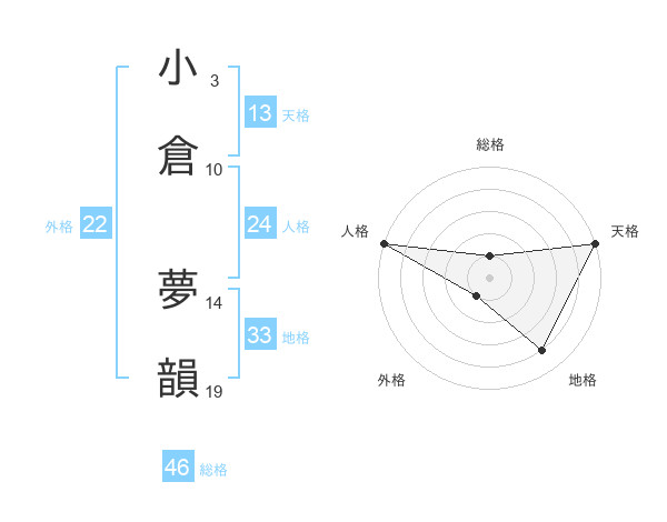 小倉 夢韻さんの外格は22画の1点!