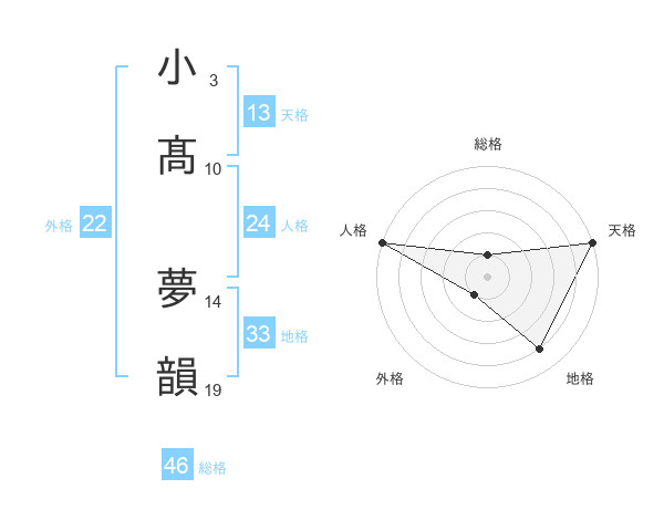小髙 夢韻さんを姓名の画数から五運を鑑定