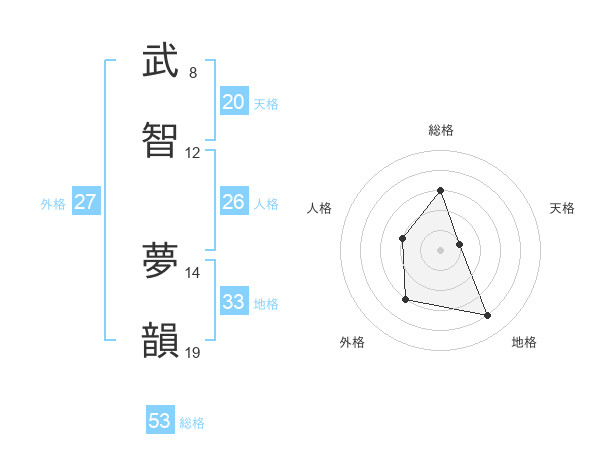 武智 夢韻さんの総格は53画の3点!