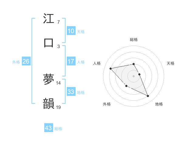 江口 夢韻さんを姓名の画数から五運を鑑定
