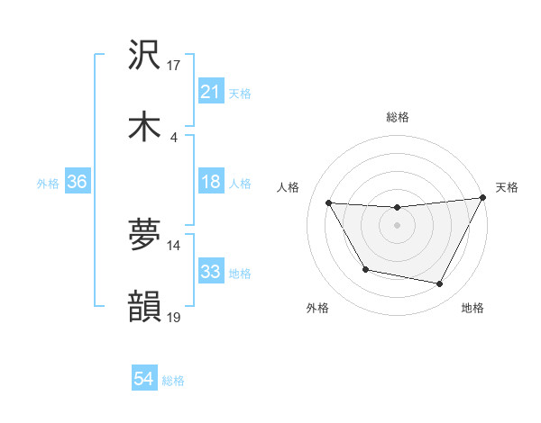 沢木 夢韻さんの天格は21画の5点!