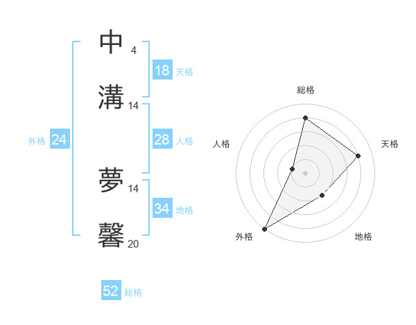中溝 夢馨さんの天格は18画の4点!