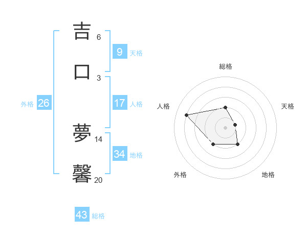 吉口 夢馨さんの総格は43画の2点