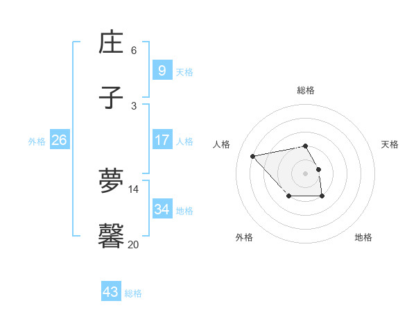 庄子 夢馨さんを姓名の画数から五運を鑑定