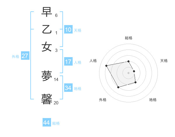 早乙女 夢馨さんの総格は44画の2点!