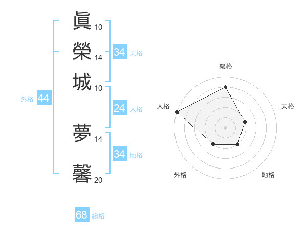眞榮城 夢馨さんを姓名の画数から五運を鑑定