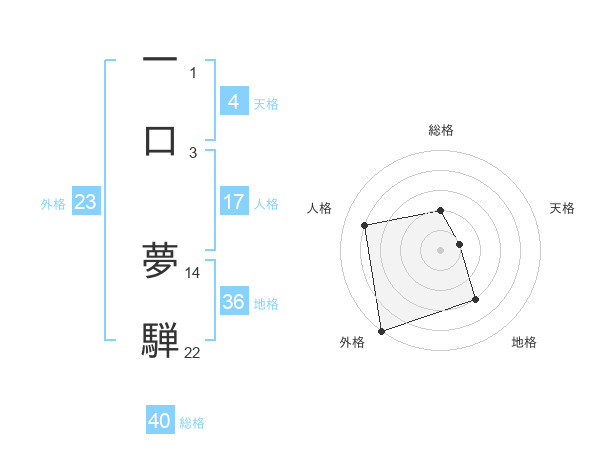 一口 夢騨さんを姓名の画数から五運を鑑定