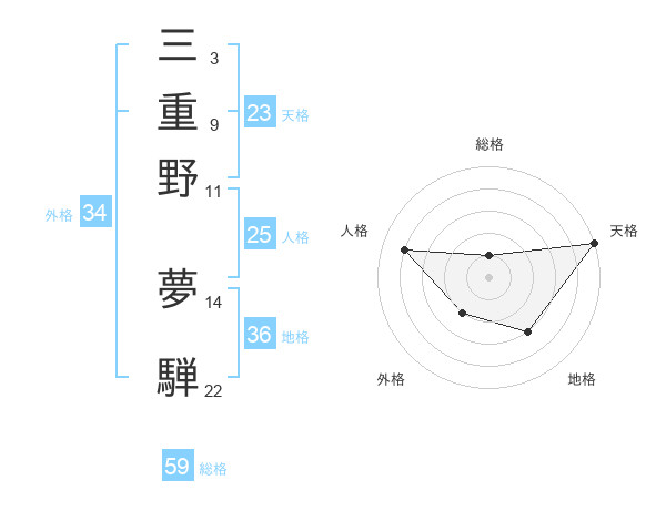 三重野 夢騨さんを姓名の画数から五運を鑑定