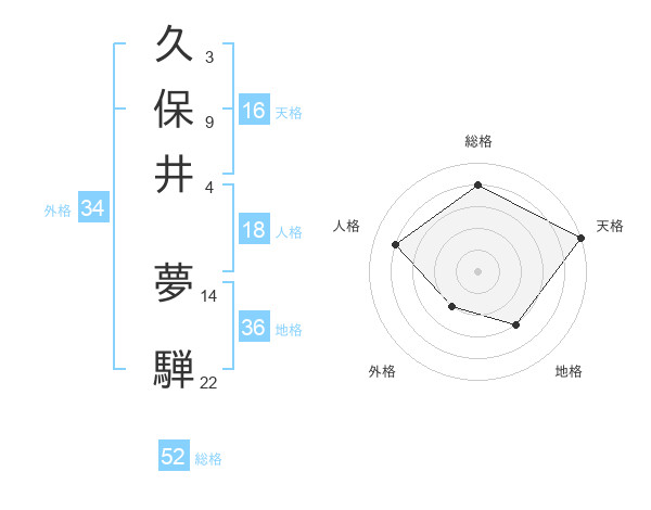 久保井 夢騨さんの天格は16画の5点!